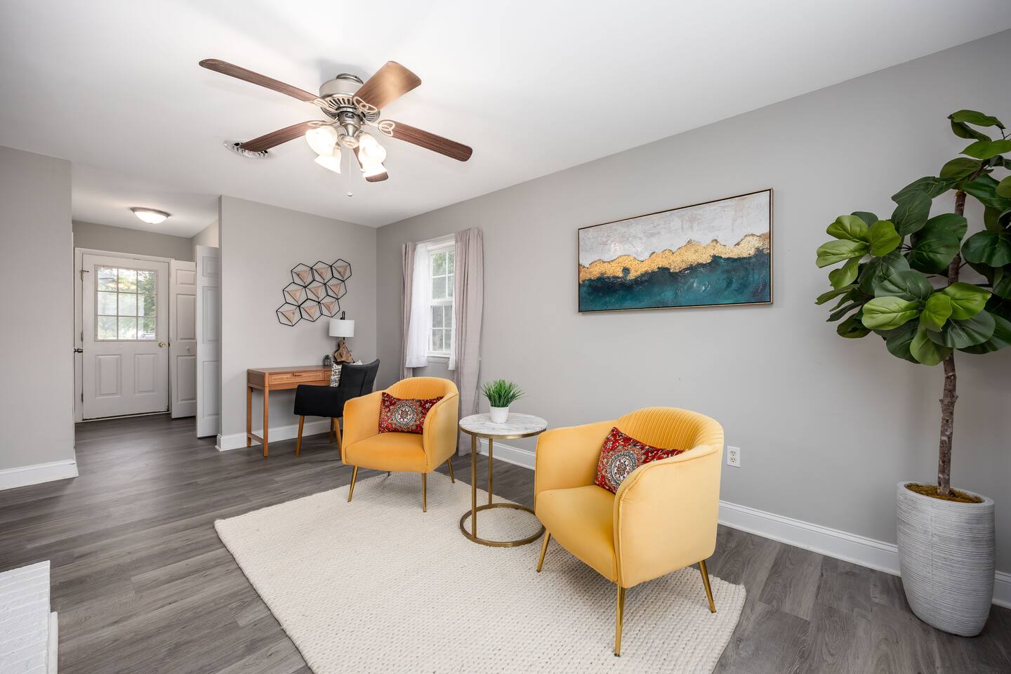 Welcome to your bright and vibrant countryside escape! This modern home features stylish decor, cozy conversation areas, and a dedicated workspace—perfect for work or relaxation. Enjoy peaceful surroundings with all the comforts of home. Whether you're here to unwind or explore the Eastern Shore, you'll feel right at home in this inviting space.