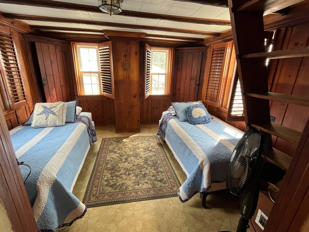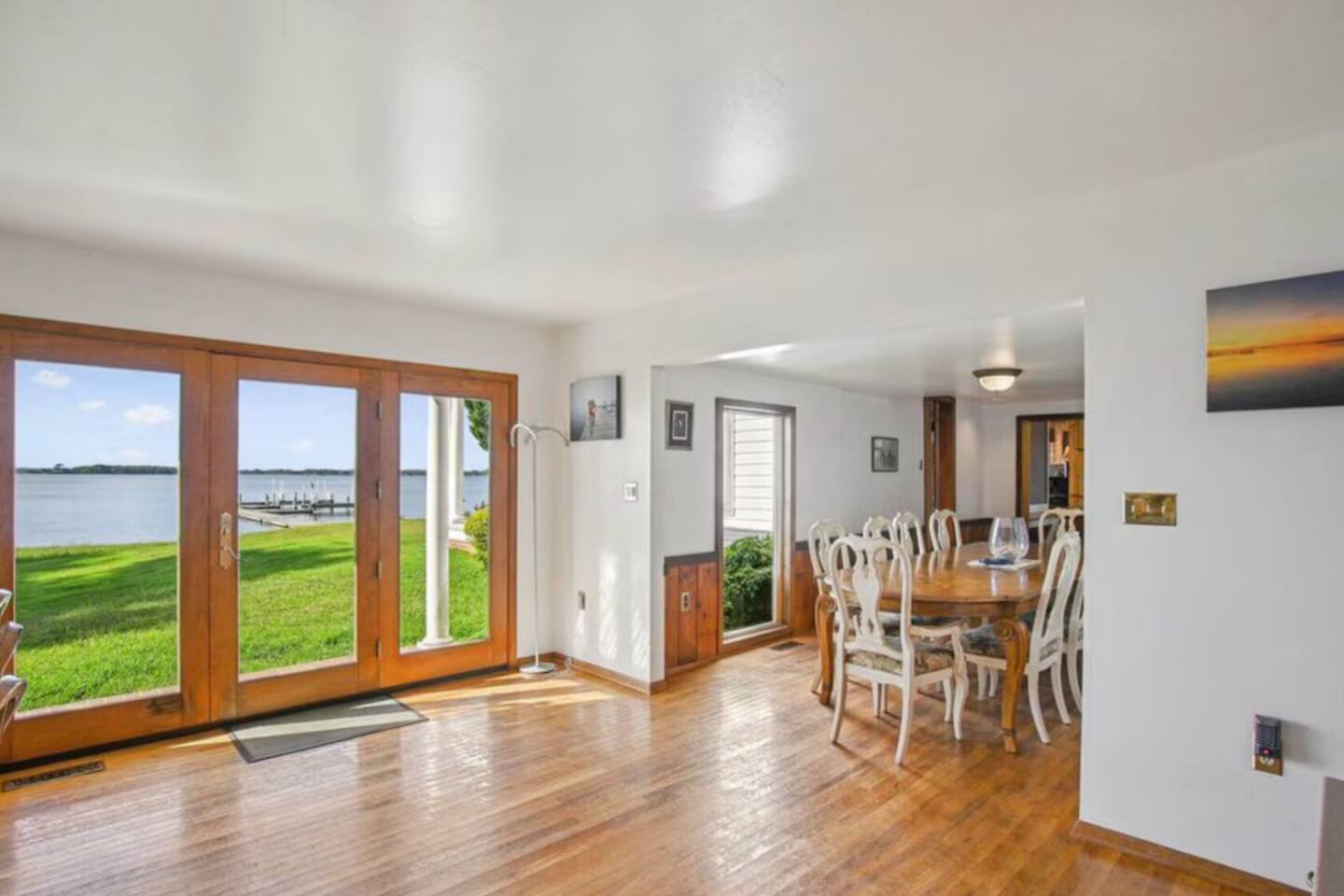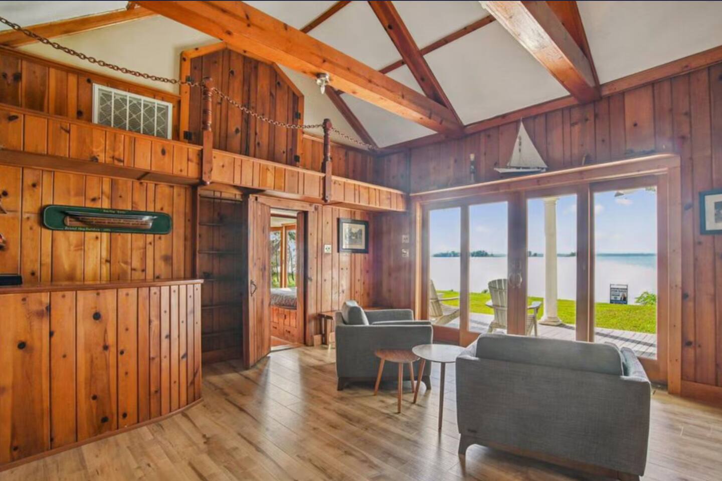 Under new ownership and management as of March 2026, this property is starting an exciting new chapter. The previous owner earned over 150 wonderful Airbnb reviews, but unfortunately those reviews cannot be transferred to the new listing. The good news: the new owner has already made major improvements, including a new roof, updated water system, new and refinished flooring, and fresh paint, all designed to make this already special waterfront stay even better. Main house + guest house sit on 4 waterfront acres, set up to make the most of the water views. The main home was originally built in the 1800s and has been updated with care not to compromise its character—comfortable year-round, with a cook’s kitchen and a few easy “hang out” spaces. The wide porch has Adirondack chairs and a simple, relaxing view of the water. Bedrooms Main house: 6 bedrooms / 3 full baths Upstairs: 4 queen bedrooms (2 face the water, 2 face the woods) + 1 full bath Downstairs: 1 bedroom with 3 twins (bunk bed + twin) and great water views, plus another bedroom with 2 twins + 2 full baths Guest house: Studio-style space with king bed, full bath, and a balcony (see photos). Bathrooms Main house has 3 full baths: Upstairs bath: walk-in shower First-floor bath near kitchen: walk-in shower + washer/dryer Second first-floor bath: tub/shower combo Guest house bath: walk-in shower